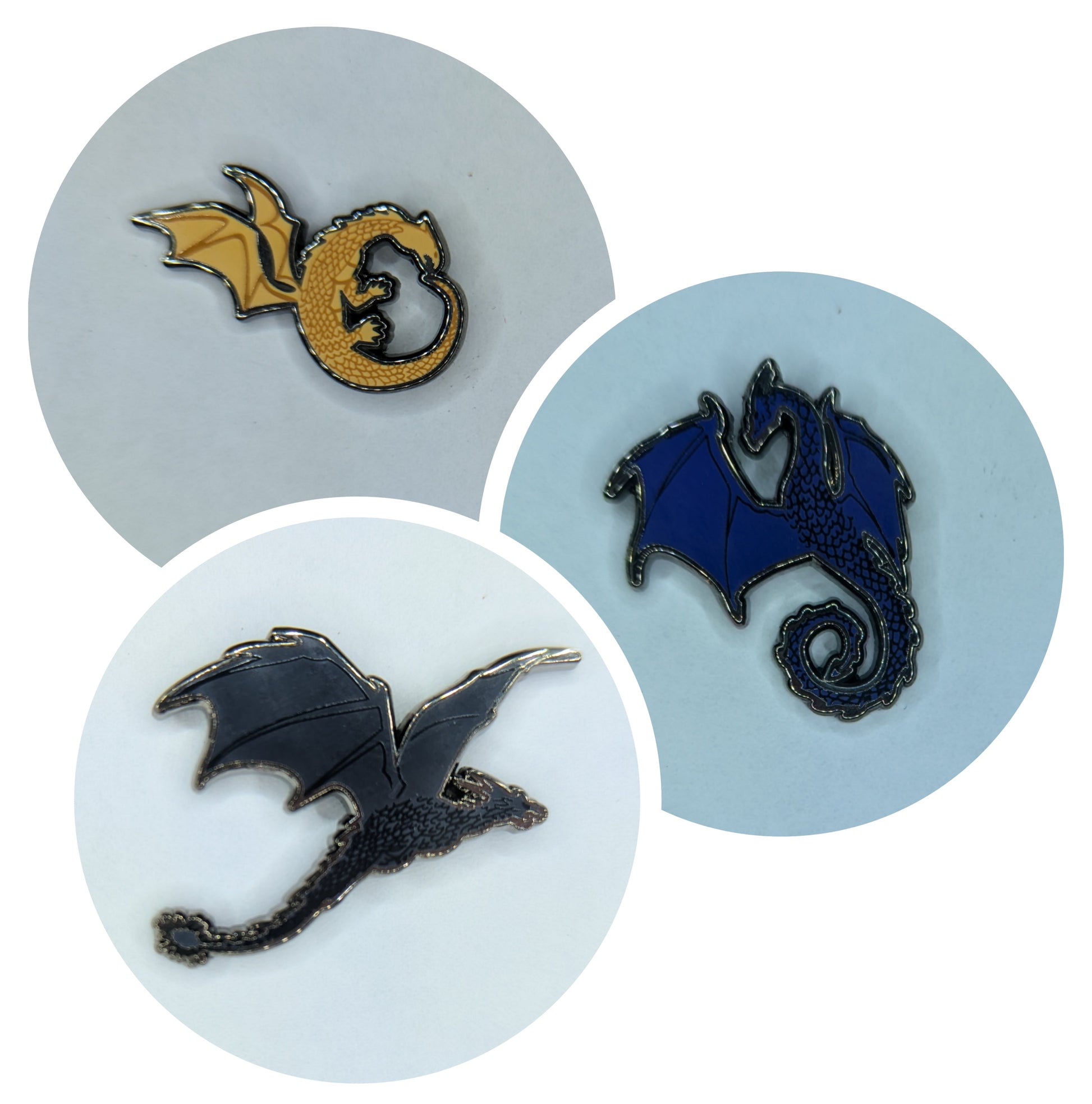 These spectacular mini pins of the dragons from 4th Wing are impressively detailed with their own screenprint, ready to fly into your pin collection! They range between a half inch to an inch in size - they're perfect fillers for your dragon board or ita bag! There is a VERY limited quantity - don't let them get away!